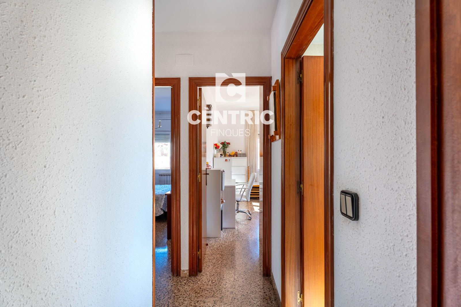 L’habitatge disposa d’una entrada independent que ens condueix a un gran rebedor distribuïdor. Des d’aquest punt central s’obre un ampli i lluminós saló-menjador orientat a oest, ideal per gaudir de la llum natural i de postes de sol càlides i acollidores. La cuina office, espaiosa i funcional, compta amb sortida directa a la galeria, aportant comoditat i practicitat.