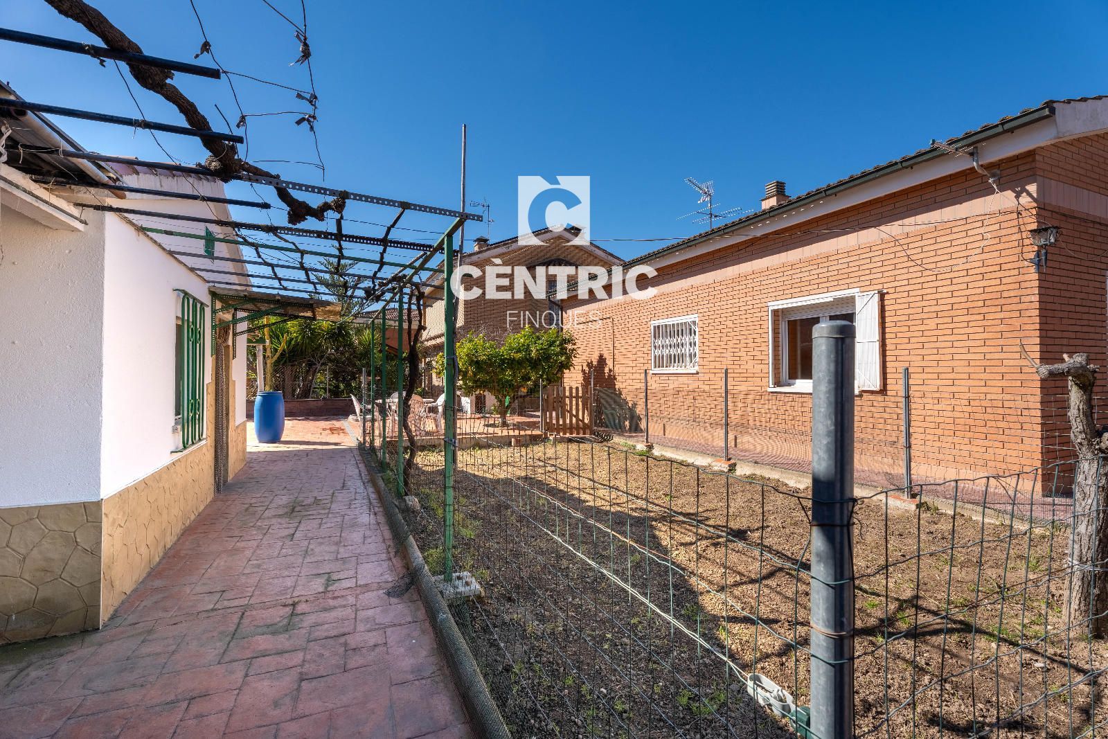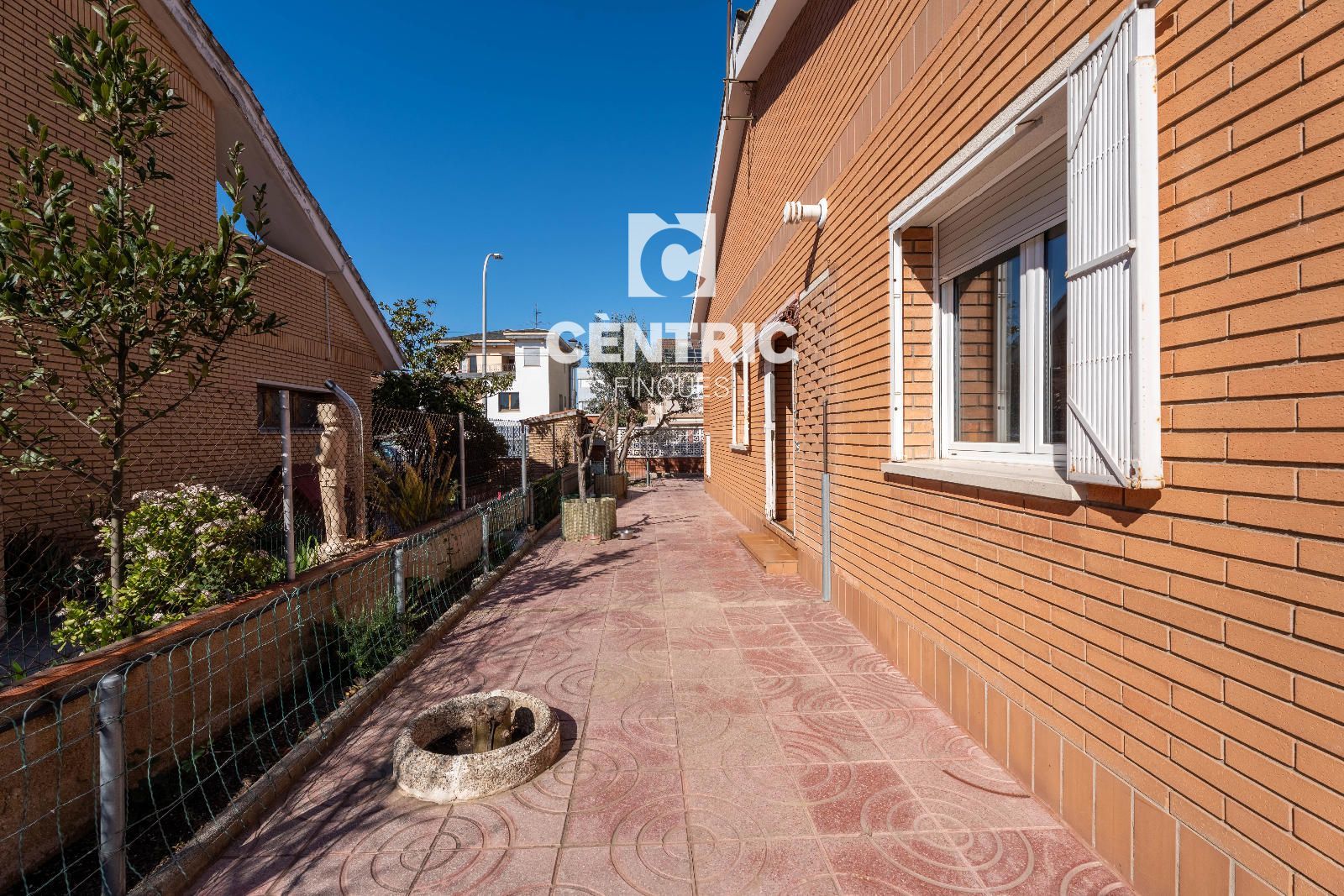 En accedir a la finca ens rep una sòlida casa d’obra vista, amb un pati davanter que aporta presència i calidesa. Des d’aquí tenim accés al pàrquing amb capacitat per a cotxe i motos.