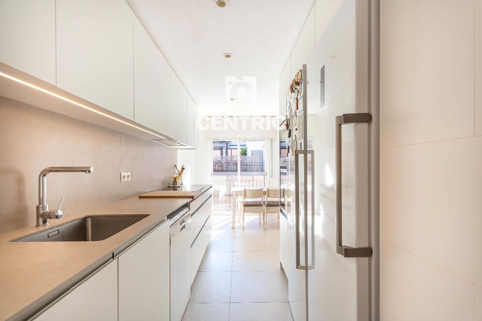 En entrar-hi, la sensació d’espai i llum et captiva immediatament. A la planta baixa hi trobem un ampli saló-menjador orientat a est, banyat pel sol del matí i amb sortida directa a un agradable balcó, ideal per començar el dia amb energia o relaxar-te al vespre. La cuina office, de dimensions generoses, està pensada per viure-la plenament: espai per als àpats diaris, gran capacitat d’emmagatzematge i amplitud suficient per col·locar-hi dues neveres o una combi, perfecta per a famílies que necessiten comoditat i funcionalitat.